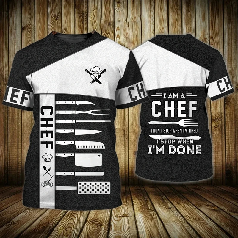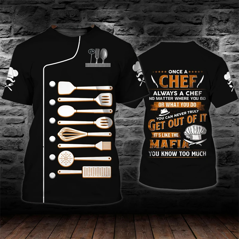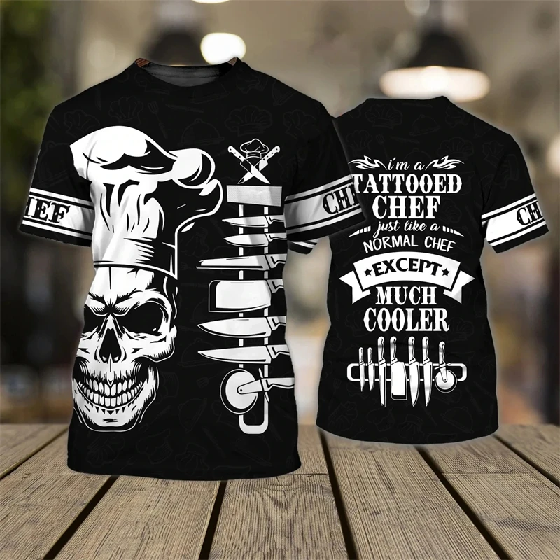 Chef Shirt Kitchen Men’s T-shirts 3D Print Men Clothing O-Neck Oversized Short Sleeve Tops Fashion Punk Streetwear Tee Shirt 4XL