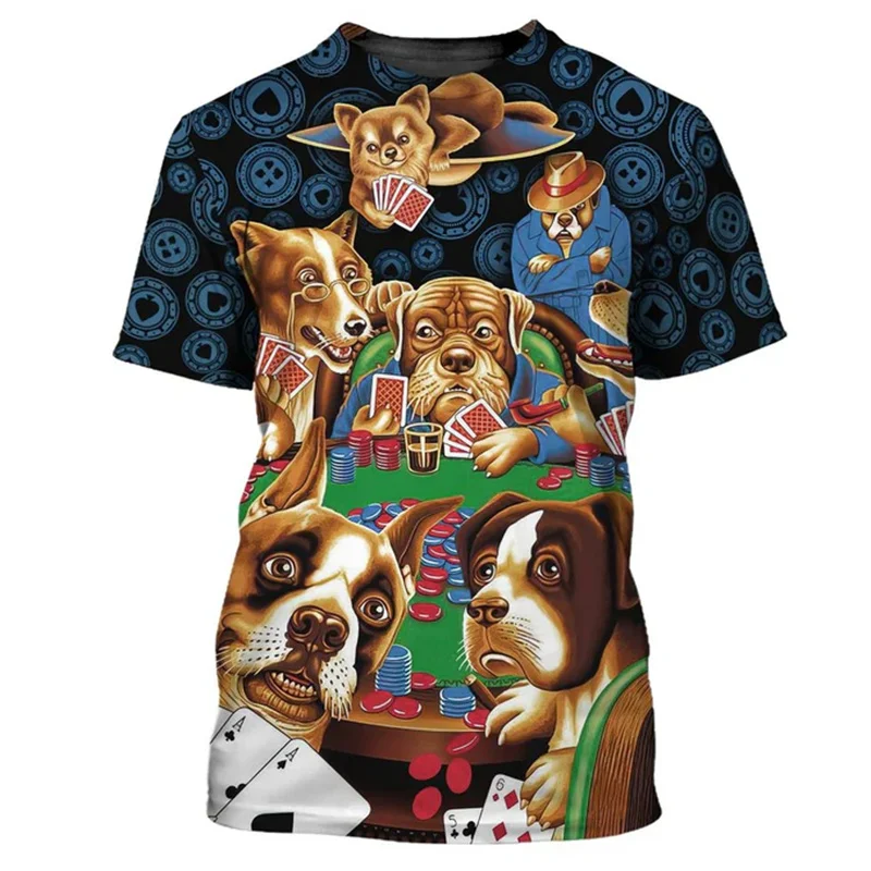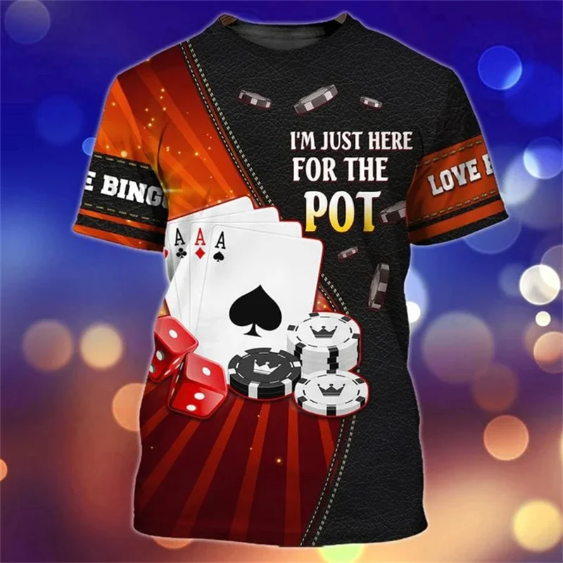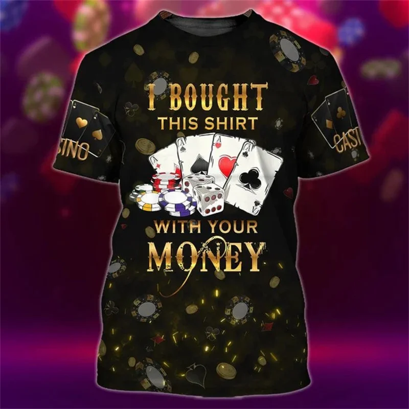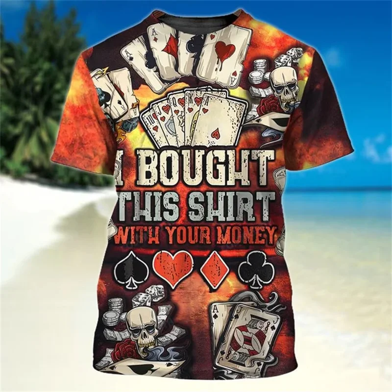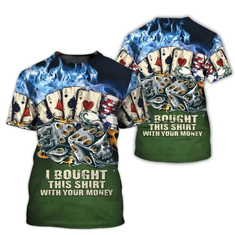 Poker Card Game Funny Print T-shirt Men’s Clothing Casual Sport Short Sleeve T Shirts 3D Print Funny Pattern Novel Harajuku Tee